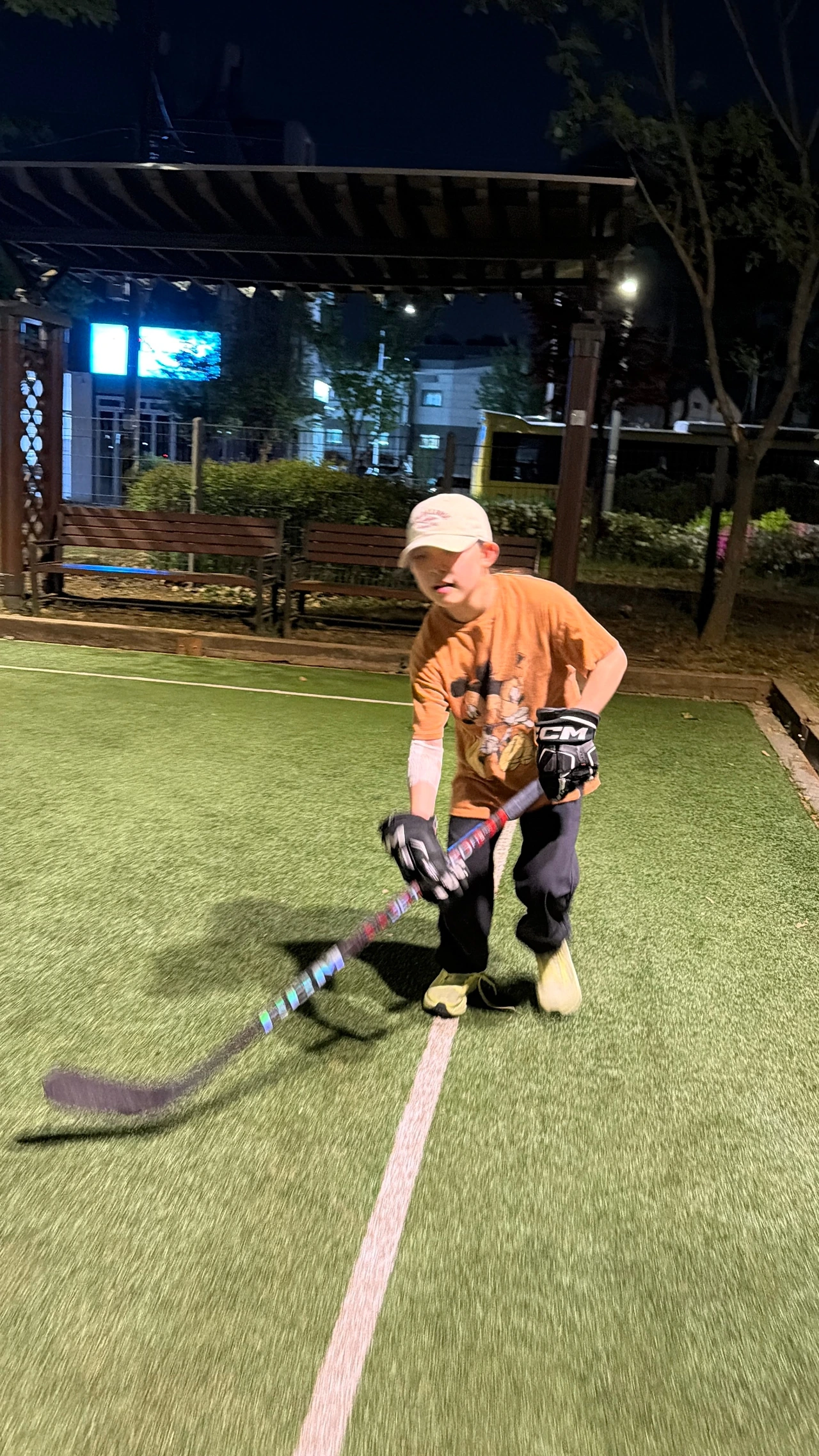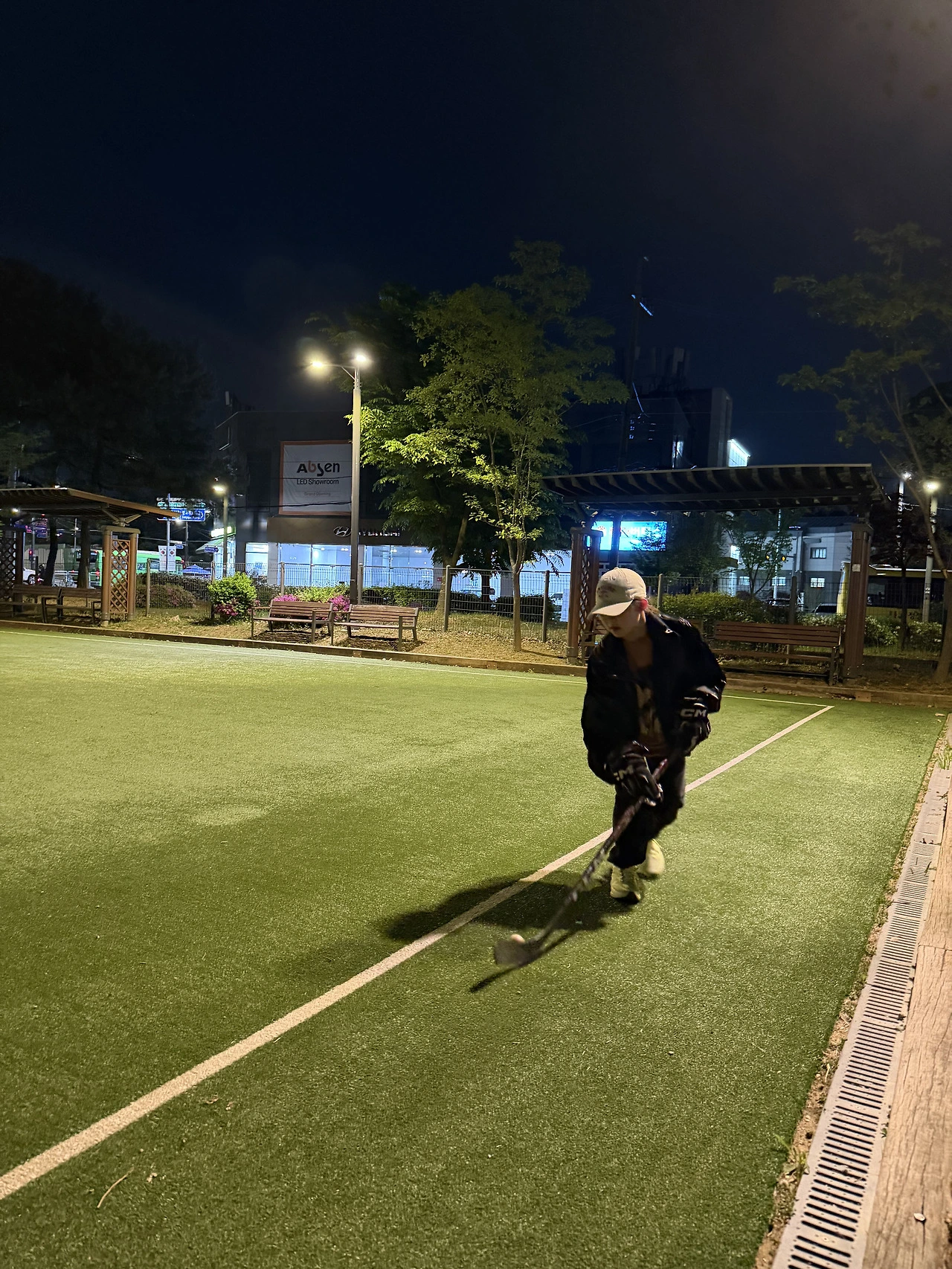 그런데 아이스하키를 하는 딸아이가 드리블 연습을 가자고 한다.
