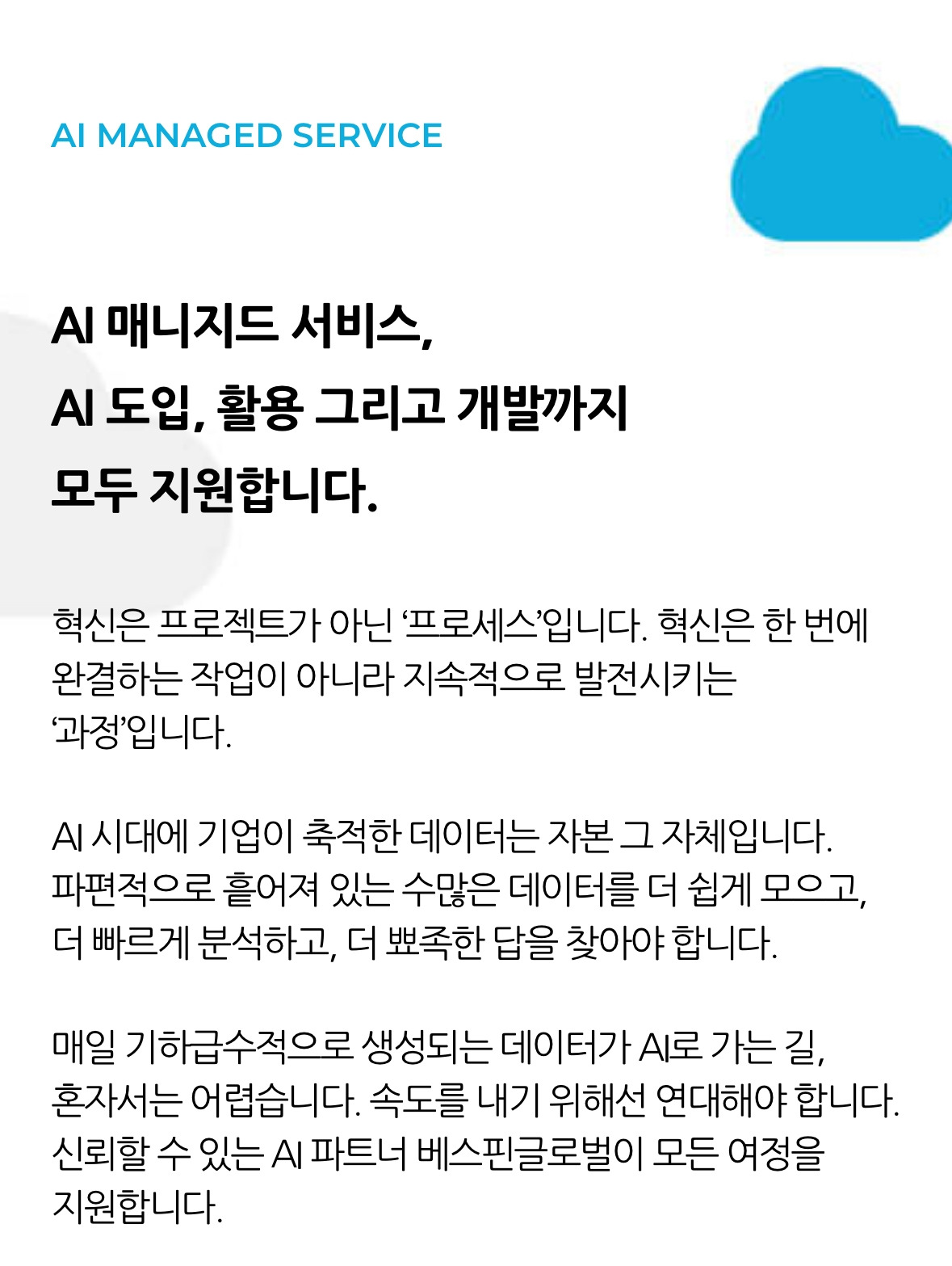 물론 적용은 그리 쉽지 않아 보여서 웹사이트를 방문해보니 아래처럼 불릿(Bullet)으로 필요할 땐 구름 아이콘인 Cloud&AI만 사용되어 있다.