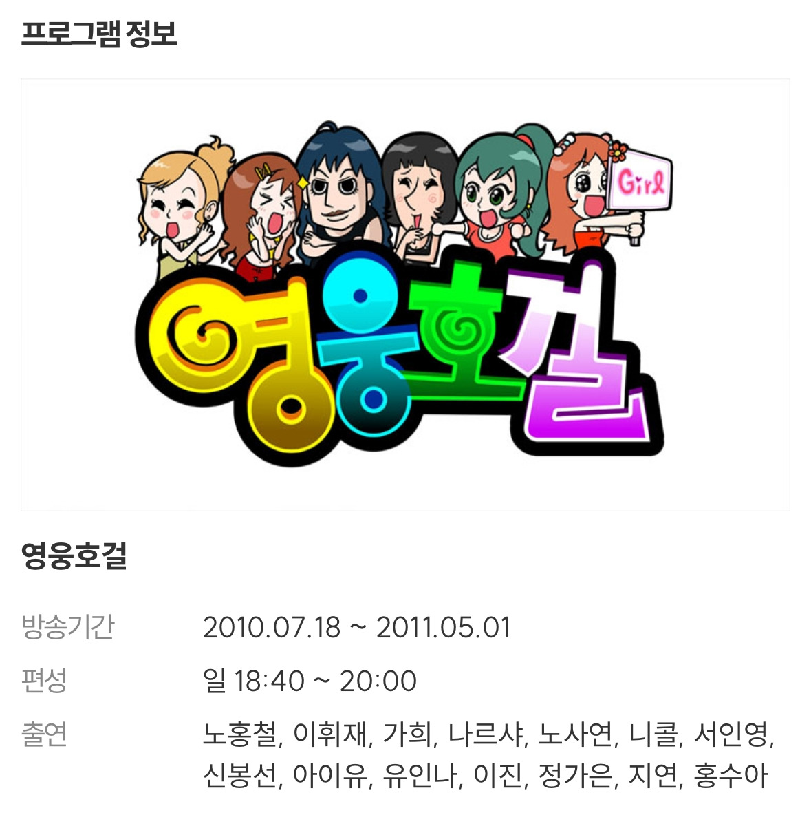 말이 나온 김에 영웅호걸을 검색해 보니 반가운 프로그램 로고도 볼 수 있었다.