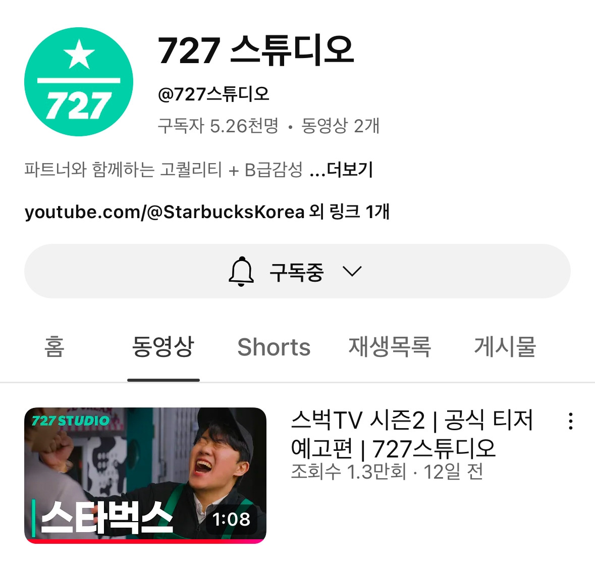 하지만 스타벅스는 접근 가능한 고급감과 특유의 세련미가 정체성인데, 아무리 스낵컬처 위주로 소통하기 위한 유튜브 채널이라 하더라도 너무 괴리감이 생기는 건 아닌지..