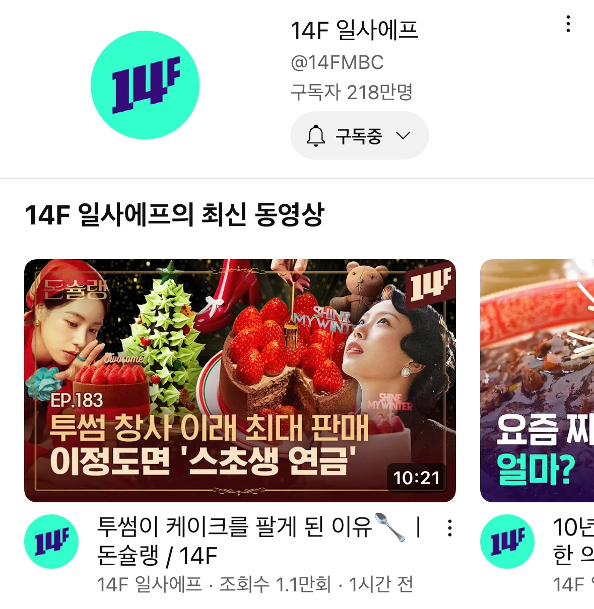 727 스튜디오처럼 유튜브 채널 중 숫자로 네이밍을 정한 것을 보니 문득 MBC의 14F가 생각난다.