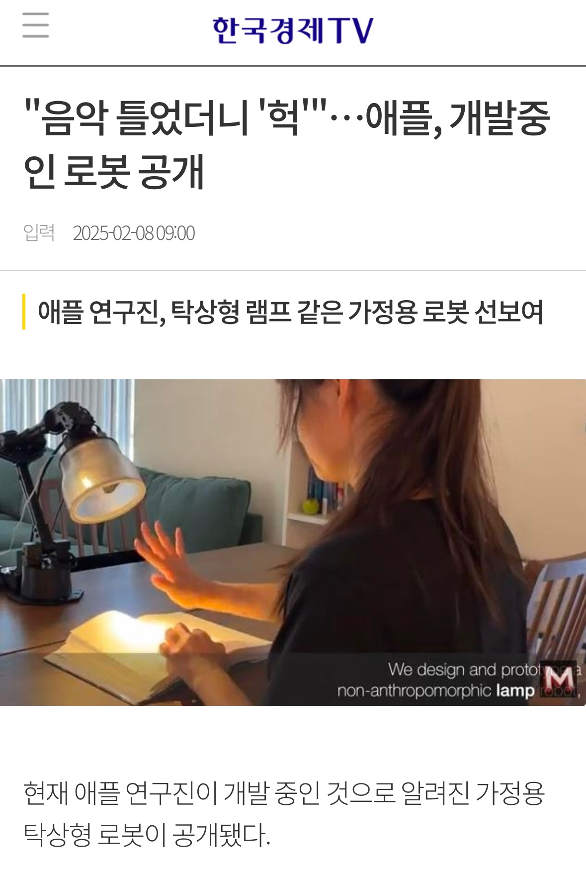 주말 사이 뉴스 중 애플의 로봇 램프 소식이 기억에 남아 논평으로 다룬다.