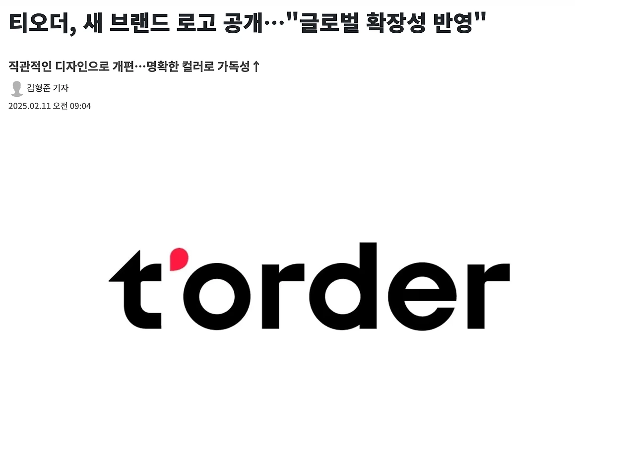 티오더의 새로운 브랜드 디자인 공개 소식은 다루고 싶지만,