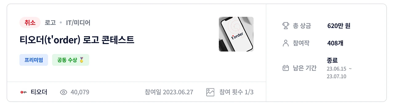 필자에게는 1년 반 전 티오더 공모전에 참여했다 허망한 결과가 기억이 떠올랐기 때문이다.