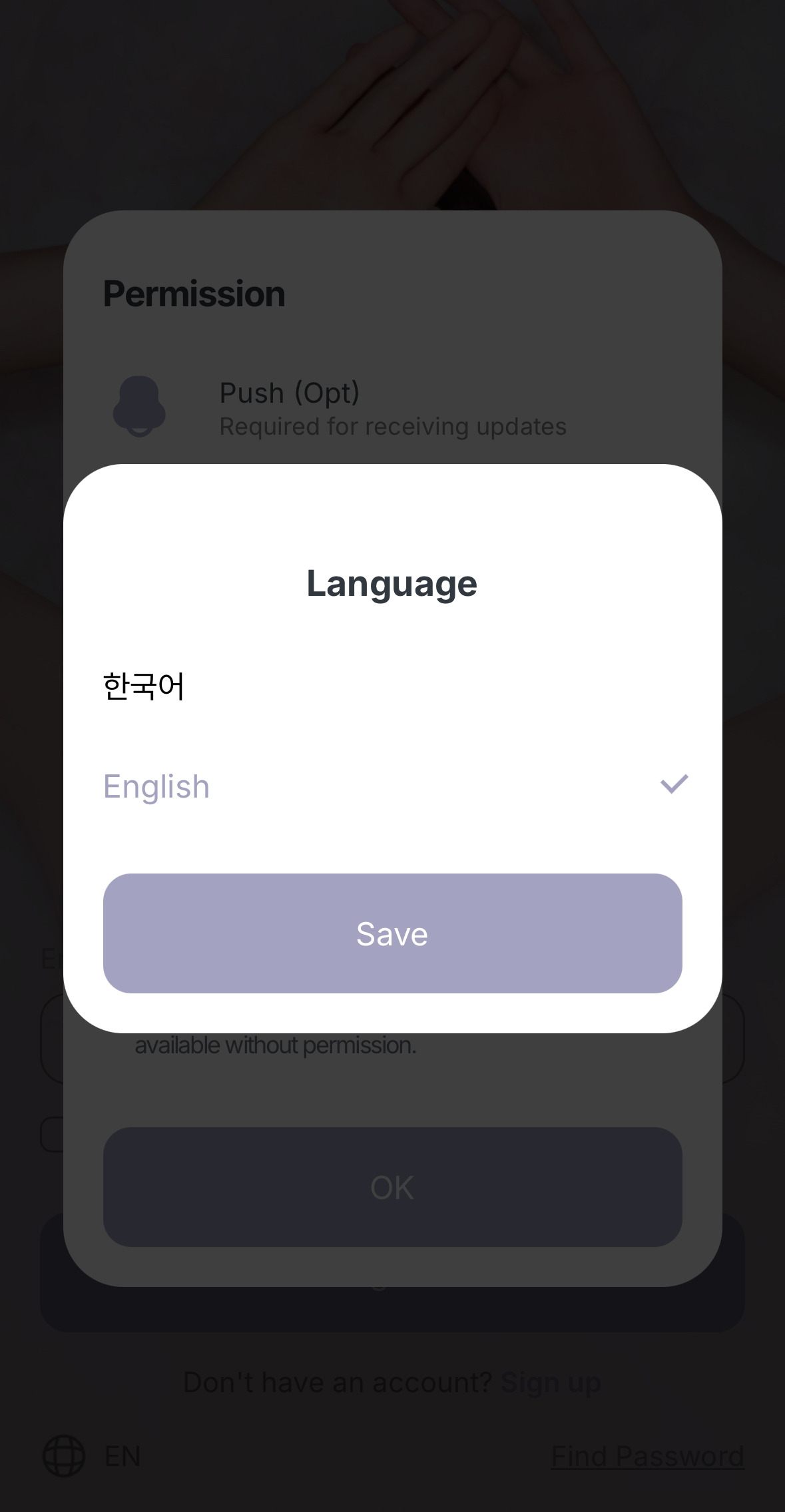 한국어와 영어 두 가지로 설정할 수 있는데, 영어가 기본값인 점에서 역시 글로벌 스타구나란 생각이 절로 든다.