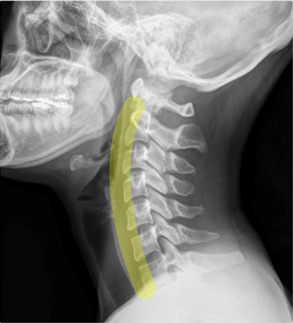 우리의 목은 C형태로 굽어 있습니다. 이를 '경추곡선'이라고 합니다. 무거운 머리를 수직 방향에서 안정적이고 효율적으로 받치기 위한 아치 구조입니다. 이 곡선이 자연스럽게 유지되는 것이 핵심입니다.