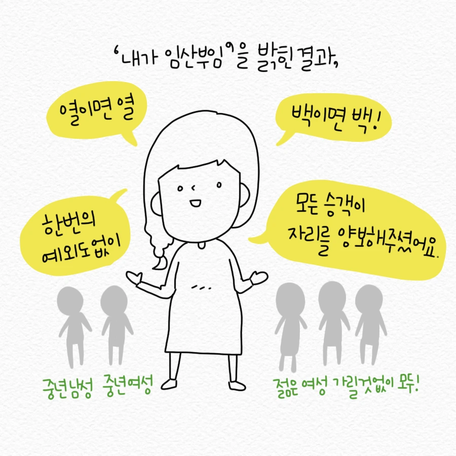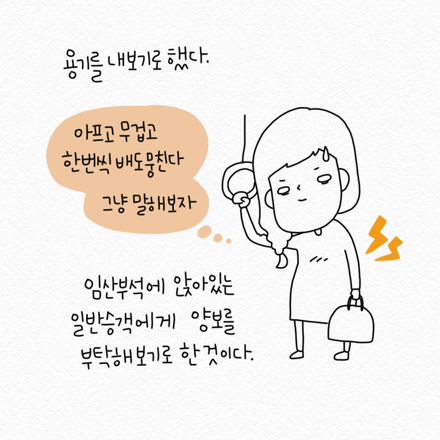 첫 시도할때는 입이 너무너무 안떨어졌지만.... 눈 딱감고 용기를 내니 모든 일반승객들이 바로 상황을 이해하시고 자리를 양보해주셨다.