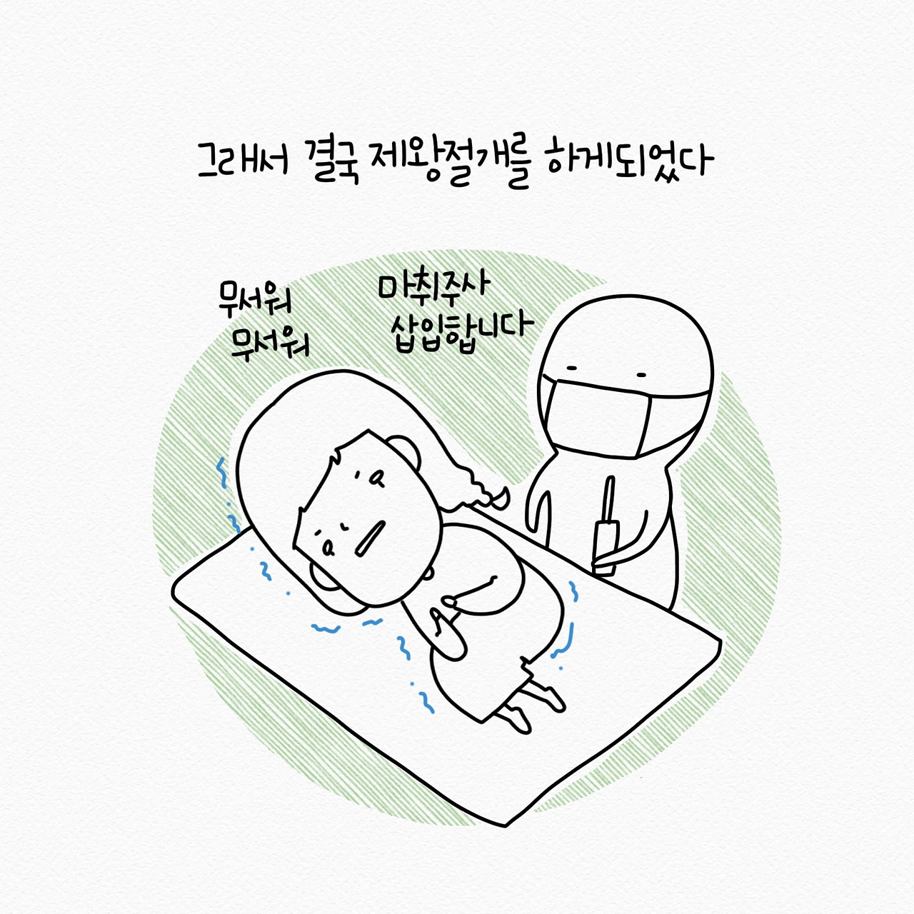 수술은 너무 무서웠고, (마취과 의사가 퉁명스러워서 더 무서웠음)