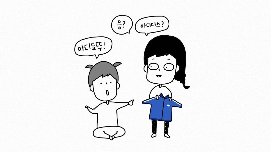 아기가 아디다스를 말하기 시작했다