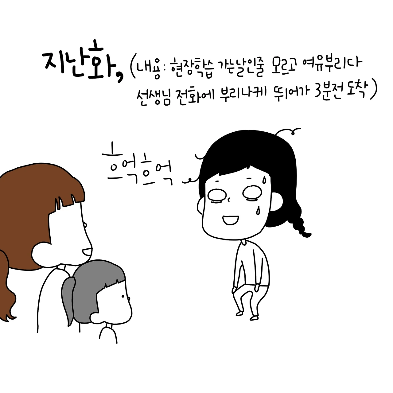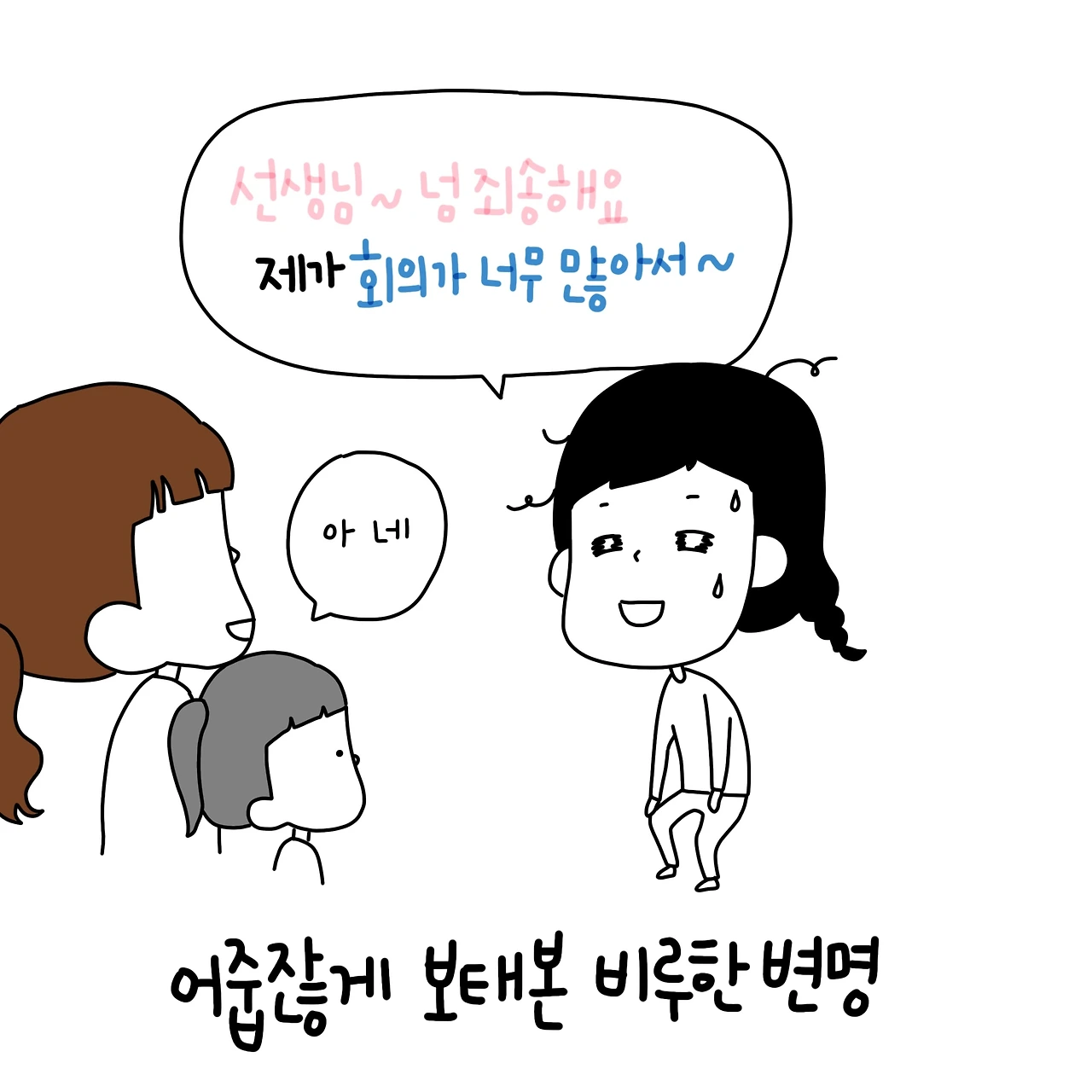 아이 지각에 대한 변명을 늘어놓는 어미라니