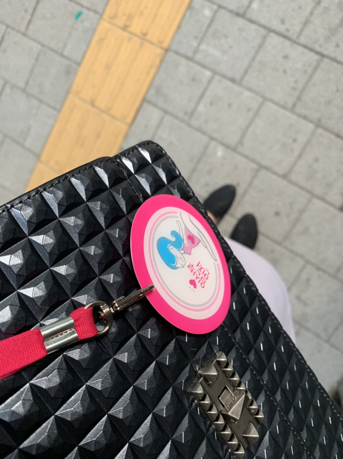 출근길: x. 하지만 그자리에 다른 임산부가 앉아있었다. 가방에 매달린 핑크뱃지를 봄!