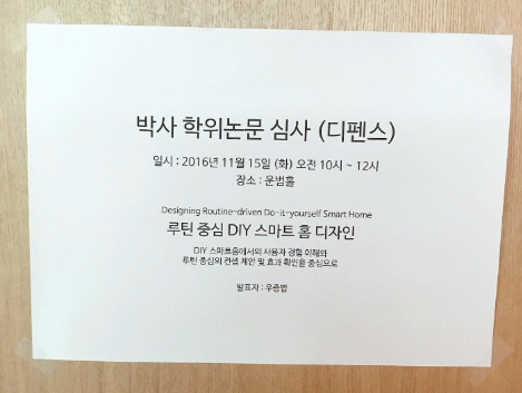 11월 1일 날 인쇄된 학위논문을 심사위원님들께 드리고, 발표 준비에 매진하고 있을 때였다.