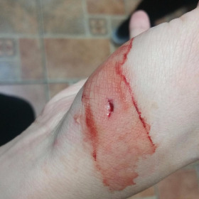 11월 5일 학과에서 30주년 행사가 있어서 주말에도 학교에서 행사에 참가하였다. 오랜만에 친구들과 선배들을 만나고 담소를 나누는 즐거운 시간이었다. 하지만 이제 마무리하고 집으로 향하기 직전에 사고가 발생했다. 잠시 다른 연구실에 볼일이 있어 문을 열었는데, 그 연구실 교수님이 기르는 개가 갑자기 튀어나와서 내 손을 물었다. 오른손 손바닥을 물었다. 뭔가 쑥 들어오는 느낌이 들었는데, 정신 차리고 보니 오른손에서 피가 줄줄 흘러내리고 있었다 (그림 8-1). 응급처치를 하고 집으로 돌아왔는데, 생각보다 통증이 심해져서 응급실로 향했다.