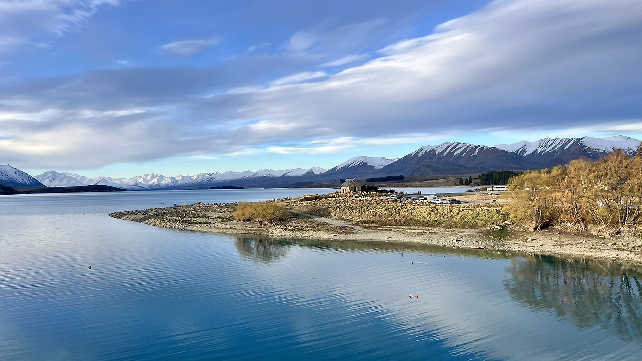 비교하자면 청의 호수가 더 작아서인지 훨씬더 에메랄드빛이고 테카포 호수는 그냥 푸르다.