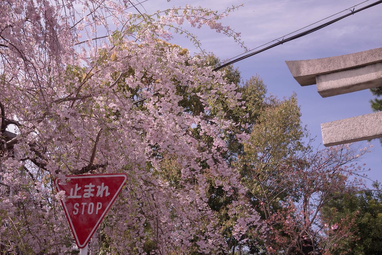 저는 대부분의 여행지에서 웬만하면 걷는 것을 좋아합니다. 이번 교토 여행에서도 가까운 거리는 걷는 것을 목표로 하고 왔기 때문에, 청수사로 갈 때는 버스를 이용했지만, 애초에 다시 숙소로 오는 길은 걸어서 오기로 마음먹고 있었어요. 숙소로 돌아오는 길에 야사카 신사를 들렀습니다. 벚꽃을 보기엔 조금은 늦은 시기였지만, 그래도 분홍 빛이 만개한 사진을 다행히 찍을 수 있었어요. 미세먼지로부터 자유로운 날씨 덕분에 하늘색도 예쁘고 공기도 맑아서 기분이 더 좋았던 것 같습니다.