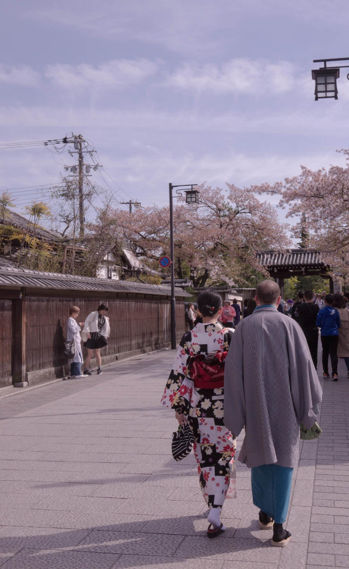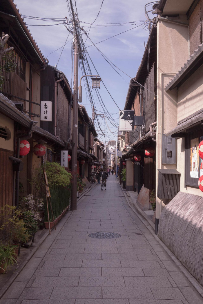숙소에 잠깐 들러 잠시 쉬는 시간을 가지고 전 날에 지나치기만 했던 기온 거리를 둘러보기 위해 발길을 옮깁니다. 옛 교토의 목조건축물들 사이로 많은 관광객들이 일본 전통복장을 입고 다니고 있습니다. 수학여행을 나온 듯한 학생들 무리도 있고, 익숙한 한국어가 들리기도 했지만, 의외로 서양에서 온 사람들이 많았어요. 오사카 여행을 할 때는 1/3은 일본인, 1/3은 중국인, 나머지 1/3은 한국인이었다면, 이 곳 교토는 중국인 단체 관광객의 비중이 높은 편은 아닌 듯합니다. 서양인들 눈에는 화려한 네온사인의 다채로운 도시보다는 기와지붕과 아기자기한 목조건축물이 색다른 매력으로 다가오는 것 같다는 생각을 했습니다. 마치 우리나라 사람들이 유럽의 오래된 전통양식을 보며 '꼭 가보고 싶다'라는 로망을 느끼는 것과 비슷하지 않을까요.