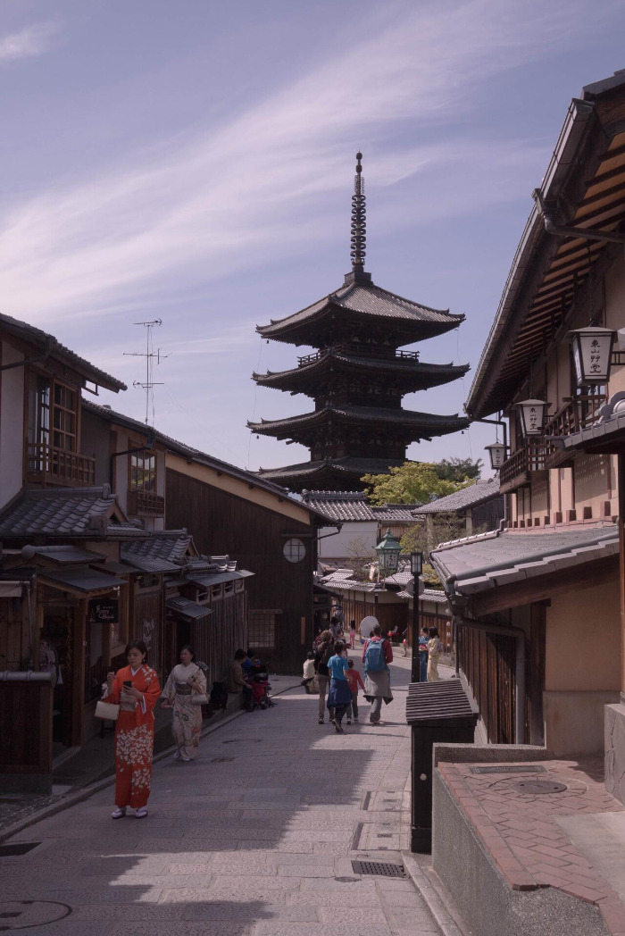 첫째 날 오후에 숙소에 도착해 짐을 풀자마자 제가 향한 곳은 청수사(淸水寺, 기요미즈데라)입니다. 아마 교토를 찾는 외국인들이 가장 많이 찾는 관광지가 아닐까 해요. 청수사 자체도 하나의 볼거리입니다만, 청수사를 가기 위해 올라야 하는 니넨자카와 산넨자카, 그 골목길의 풍경이 '교토다움'의 결정체이기 때문입니다. 이곳에서 발을 헛디뎌 넘어지면 2년, 3년 안에 죽는다는, 조금은 무서운 미신이 있습니다. 청수사로 가는 완만한 오르막길은 포장이 매우 잘 되어있긴 합니다만, 그런 속설 때문인지 다리에 조금은 힘이 더 들어가더라고요. 구석구석을 천천히 둘러보며 사진을 찍고, 눈에도 담아봅니다. 숨이 조금 차려할 때쯤에 뒤를 돌아보면 호칸지(법관사, 야사카의 탑)이 나지막한 목조건물 사이에 우뚝 높게 솟아 보입니다. 많은 사람들이 이 곳을 배경으로 사진을 찍고 있더라고요. 저도 일행이 있었다면 한 장 남겼을 법도 하지만, 파란 눈의 여행객들의 사진을 찍어주는 것으로 대신했습니다. 교토 여행 가이드 책에 대부분 표지를 장식하는 랜드마크가 바로 이곳이에요. 교토 여행을 계획하고 계신 분이라면, 다른 곳은 선택사항이라 하더라도 니넨자카, 산넨자카만큼은 꼭 가보시길 권해드려요.