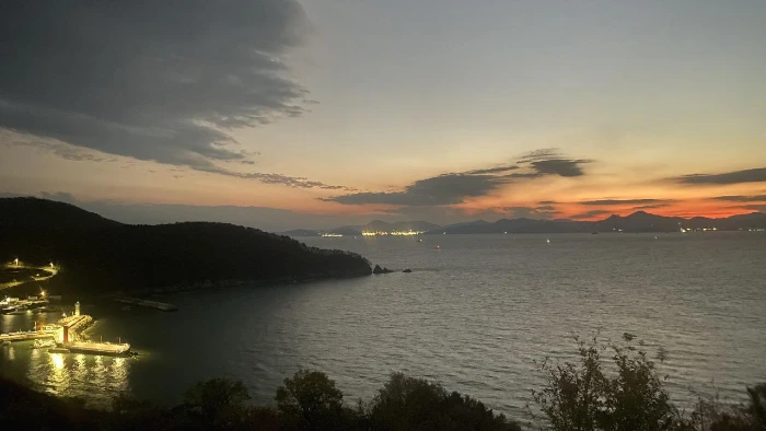 다시 대항의 입구로 돌아와서 해가 질 때까지 바다를 바라보았다. 서쪽 하늘로 사라지는 해가 주홍빛 인사를 건넨다. 땅거미가 지고 곧 어둠이 찾아왔다. 가로등이 켜진 길을 따라 등대를 향했다. 등대에서 맞는 바람에서 짠 냄새가 났다. 광안리의 반짝이는 화려함이 청춘이라면, 대항의 얼굴은 햇볕에 검게 그을린, 주름이 깊게 파인 촌사람의 느낌이다. 그리고 두 곳 모두, 아름다운 바다라는 생각이 들었다.