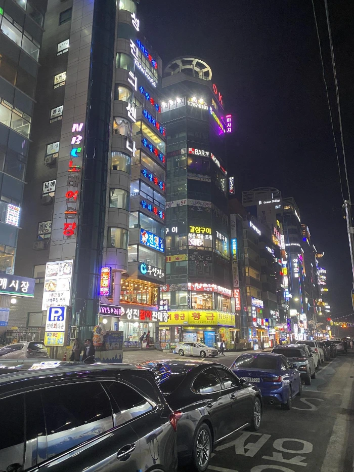 애초에 관광 목적으로 지어져 대형 호텔들이 즐비한 해운대와 달리, 광안리는 자생적으로 번화가가 된 곳이라고 한다. 그런 탓인지 광안리 앞에는 다양한 업종의 가게들이 많다. 횟집을 비롯한 각종 음식점, 카페, 술집 등이 건물 하나에 촘촘히 들어서 있다. 최근 들어서는 '오션 뷰'를 자랑하는 중소형 숙박업소들도 많이 생긴 모양이다. (심지어는 모텔 건물 1층이 횟집인 곳도 있다!) 관광지라기보다는 번화가에 바닷가가 껴 있는 듯한 느낌이라고 보면 되겠다. 코로나 사태로 자영업자들에겐 힘든 시기라고 하는 이야기는 이곳에서는 어울리지 않는다는 생각이 들었다. 늦가을의 평일 저녁시간임에도 불구하고 가게들의 명당자리는 이미 손님들로 가득 차 있었고 산책을 나온 주민들, 바다를 보며 사진을 찍는 친구 무리들, 손을 잡고 걷는 연인들은 바닷길을 따라 가을 바다에 취한 것만 같았다.