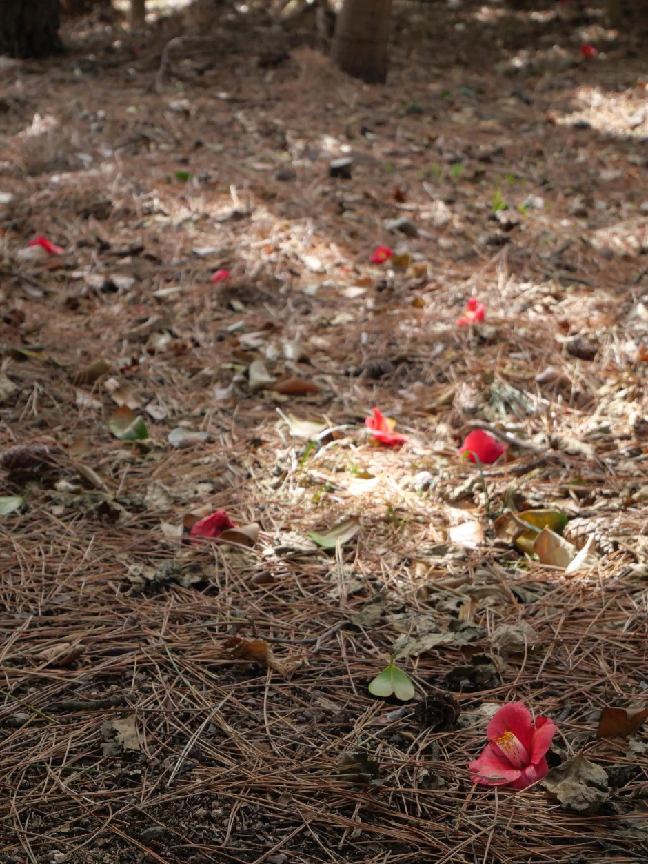 주차장에서부터 동백섬은 이름값을 한다. 언뜻 봐도 오래되어 보이는 뼈대가 큰 나무부터, 아직 여린 가지를 지닌 작은 개체까지 다양한 크기와 모양의 동백나무가 즐비하다. 나무에 달려있는 꽃을 보고 싶었지만, 시기상으로 조금은 늦은 탓에 이미 땅에 떨어진 꽃들이 많다. 하지만 뭐 어떠랴. 낙화함으로써 계절을 알리는 꽃도 있음을.