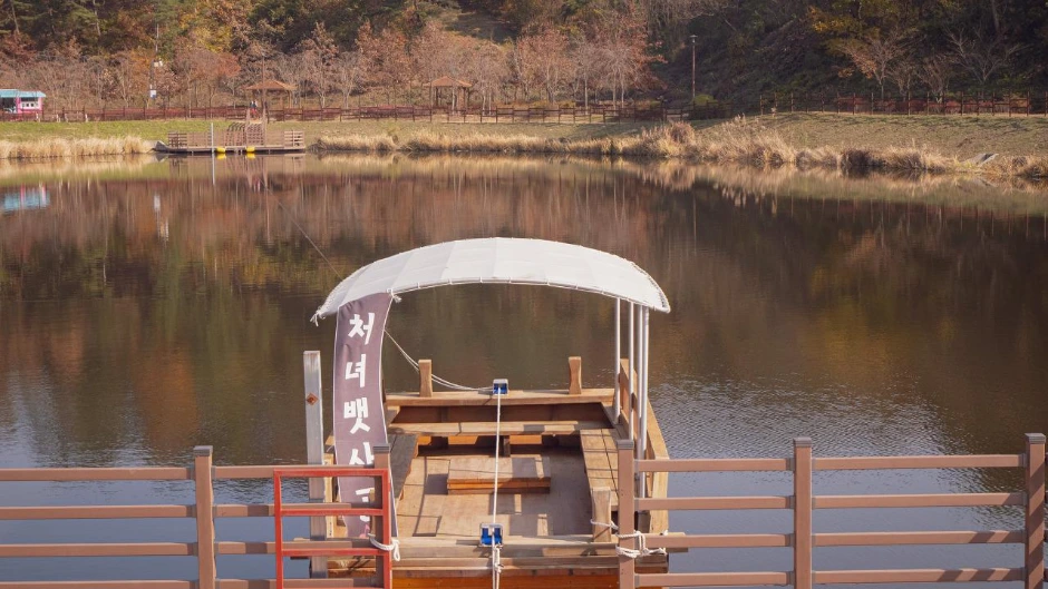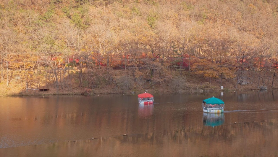 단풍길의 끝에는 저수지의 반대편으로 갈 수 있는 출렁다리가 있습니다. 출렁다리를 건너서 다시 시작점으로 오는 길에는 단풍길에서는 잘 보이지 않았던 저수지를 제대로 볼 수 있는데요, 빨갛게 물든 숲과 저수지의 물결이 수채화 같은 느낌을 줍니다. 양쪽이 다른 매력을 가진 길이 있어 돌아오는 길도 심심하지가 않았습니다.