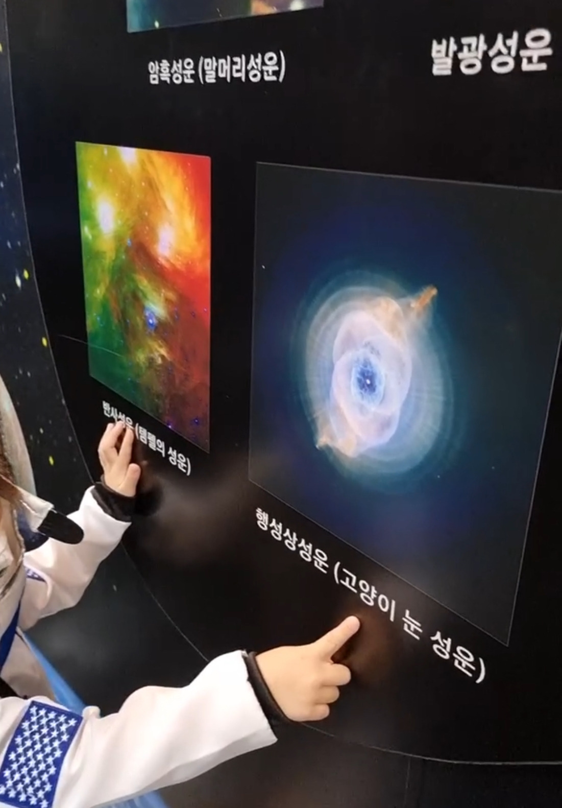 아이는 어린이날 선물로 받은 우주복을 입고, 자주 가던 작은 과학관으로 향했다. 그리고 익숙한 장소에서, 자신 있게 태양계를 소개했다. 목성의 대적점을 가리키며 아빠에게, "Jupiter have a big red spot. Look! Can you see?"라는 질문도 던졌다.
