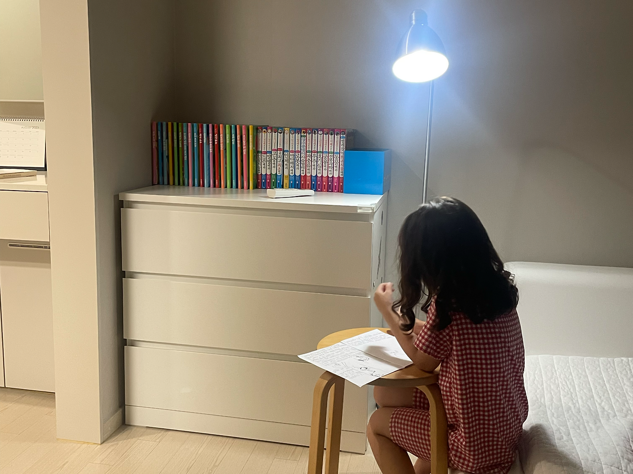 하원하면 선생님 놀이를 하며, 엄마 풀으라고 문제를 만들어주었다.