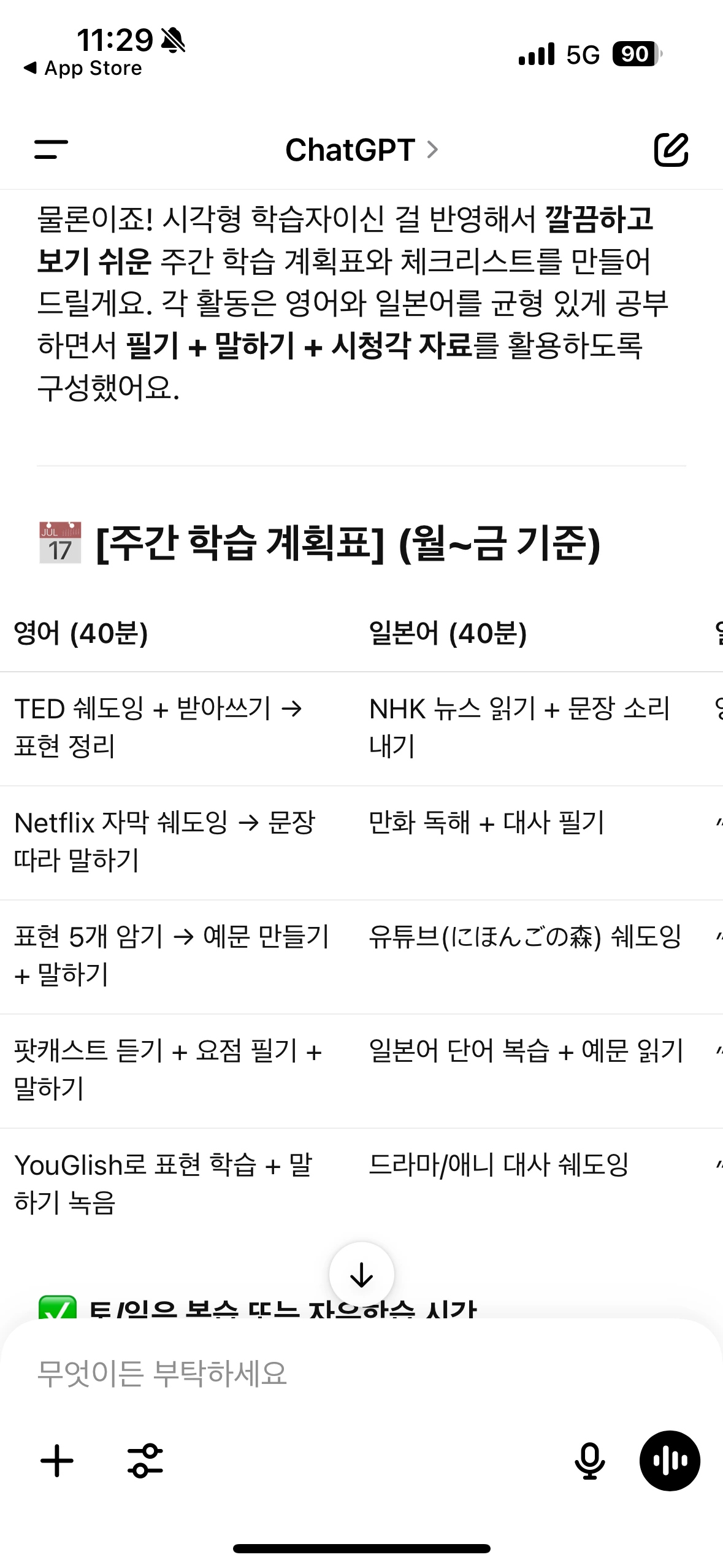 챗 지피티에게 두 가지 언어를 동시다발적으로 공부할 수 있는 방법을 물어보니, 친절하게 이것저것 알려줬다.