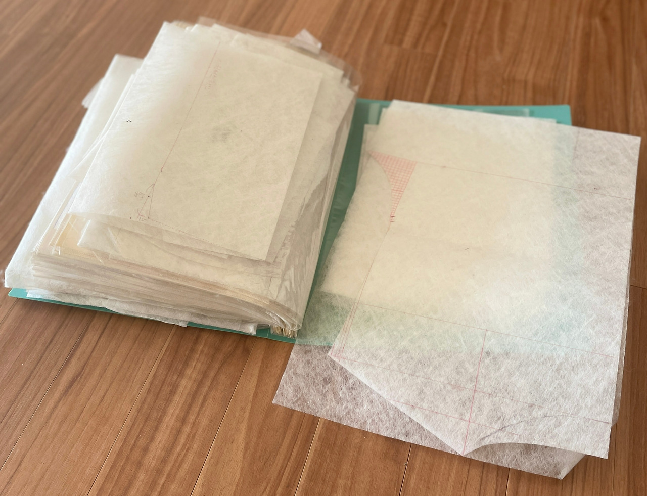 내 옷을 크게 하여 남편 옷을 만들다가 여자와 남자 옷은 달라야 한다는 것을 깨달았다. 남편 몸에 옷감을 대고 펜으로 그어 가며 마름질을 하였다. 가끔 펜 자국이 바느질 봉합 선에서 비껴 나가 옷에 낙서 자국 같은 모양으로 남기도 하였다. 만드는 기쁨에 그 또한 귀했다. 전에 만들었던 것에서 부족한 점을 보충하며 옷본을 고쳐 나갔다. 이렇게 만든 옷본이 파일 가득 모였다. 우리 식구는 갑자기 살찌거나 빠지면 안 된다. 여러 해 동안 더듬거리며 고쳐 나간 옷본들이라서 고치기가 매우 어렵기 때문이다.