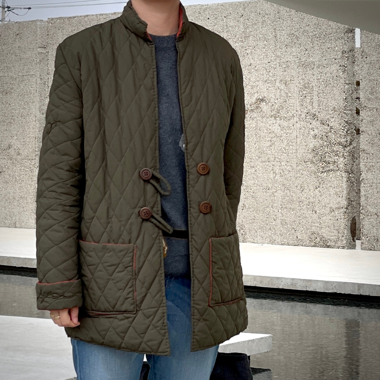 안감 천이 남아 아까워하던 중 때마침 동네 아는 분이 옷감이 좀 있는데 뭐라도 만들어 볼 테냐고 하여 냉큼 받아왔다. 기성품 재킷을 보고 대충 크기와 모양을 가늠하여 천을 자르고 반박음질로 몸통, 소매를 이었다. 남은 조각들로 주머니와 칼라를 만들었다. 단춧구멍을 만들지 못하니 천으로 고리를 만들어 단추를 걸 수 있도록 했다. 남은 안감 천도 알뜰하게 다 썼다. 옷은 모양이 그럴듯하였으나 소매를 앞뒤 없이 만들어 불편하다. 소매에도 앞뒤가 있다는 것을 이때 알았다. 칼라도 직사각형으로 잘라 붙였더니 모양이 예쁘지 않았다. 이 재킷은 어색하고 불편해서 오히려 조심스럽게 다루어 입는 옷이 되었다.