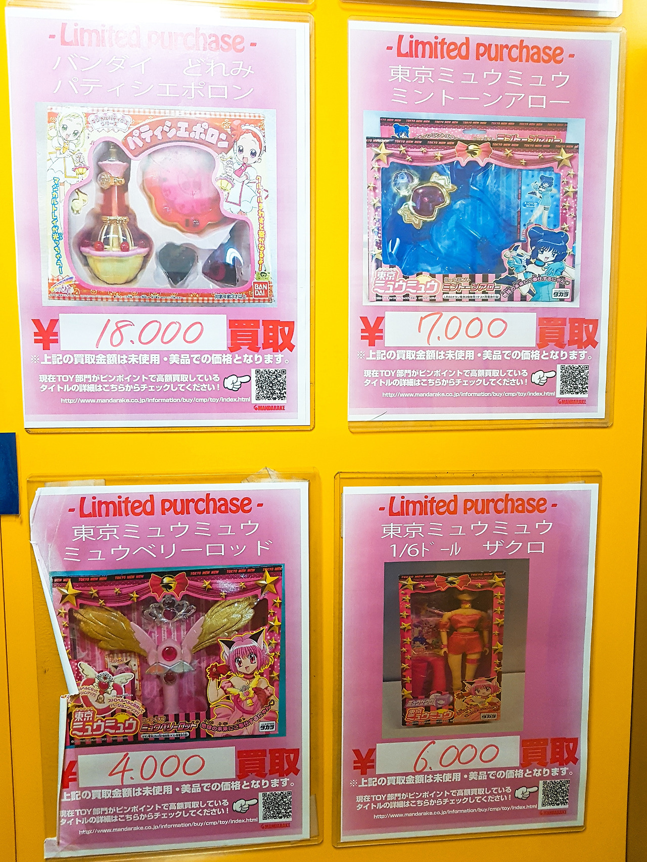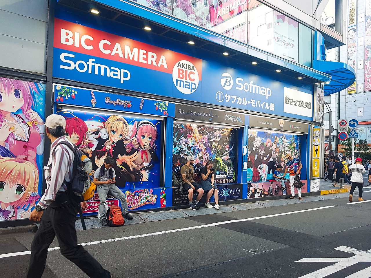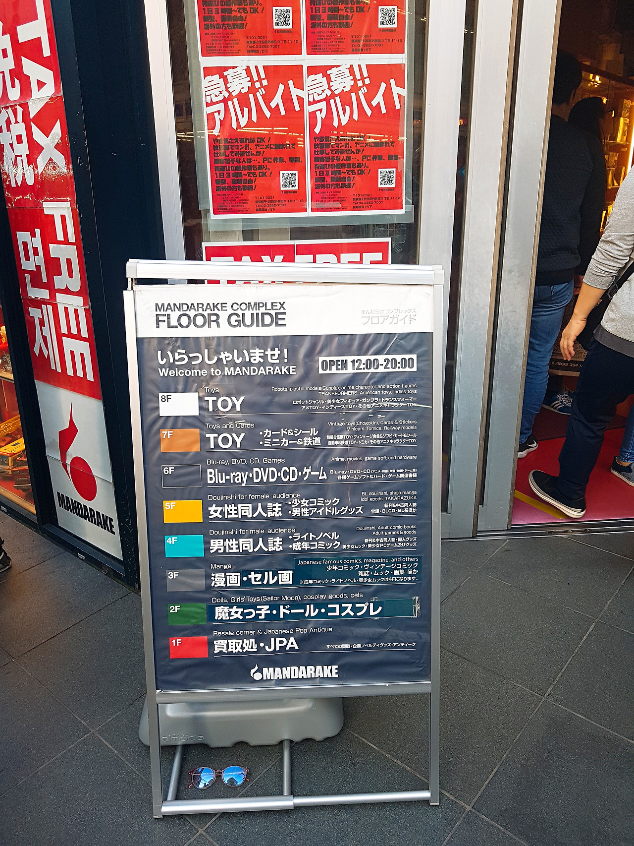 오덕들의 성지인 아키하바라에서는 온갖 피규어와 굿즈를 파는 가게들이 어마 무시하게 많아요. 그중에 가장 유명한 '만다라케'라는 샵에 들어가면 이렇게 한 건물의 층별로 테마를 만들 정도로 많은 컨텐츠가 있어요.
