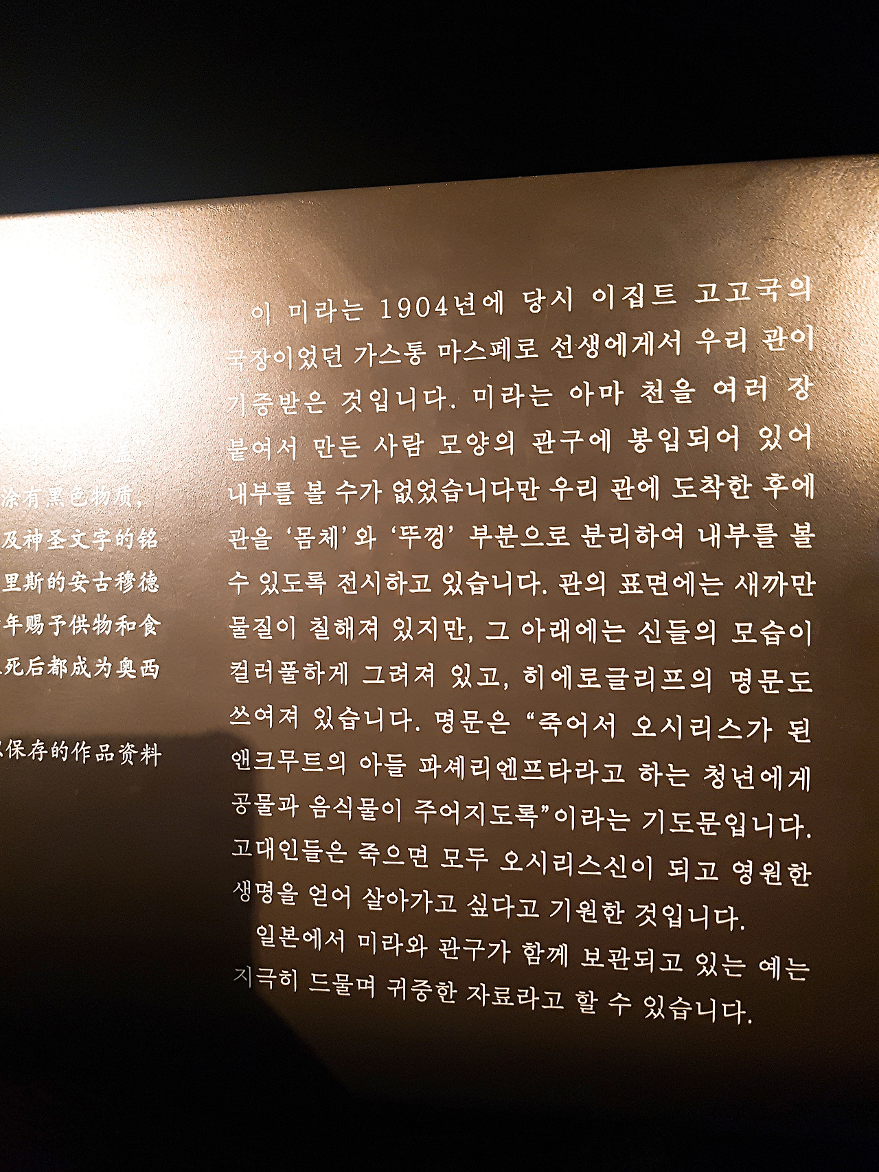 일본 국립박물관에는 (무려!) 실제 미라가 전사되어 있어요!!!ㄷㄷ 설명에 따르면 1904년에 이집트 고고국 국장이 일본 국립박물관에 기증했다고 합니다.