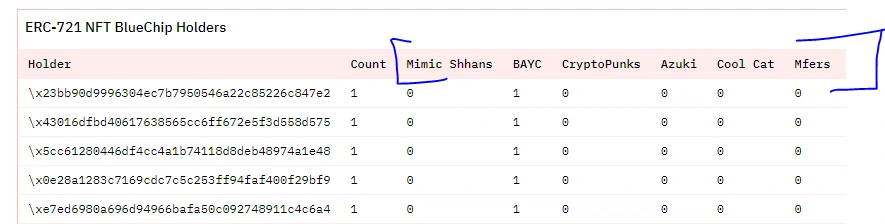 * 하나의 NFT 프로젝트를 보유한 보유자가 또 어떤 다른 프로젝트들을 가지고 있는지