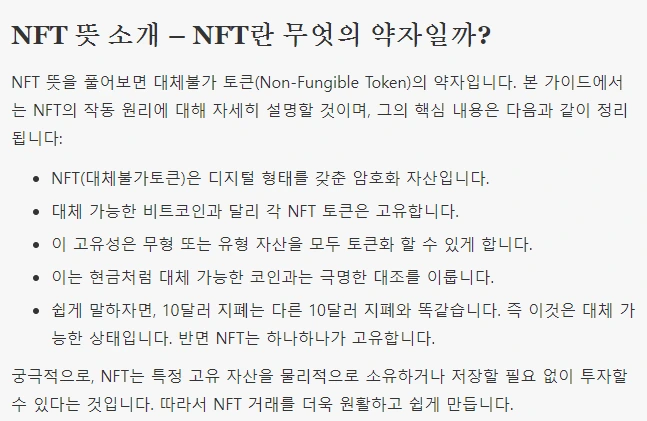 그럼 기존에 NFT를 검색하면 뭐라고 설명하는지 볼까?