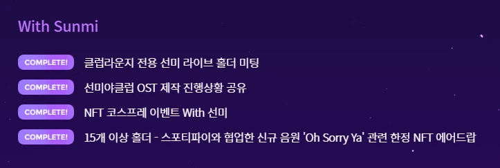 "선미야 클럽" 이라는 NFT 프로젝트는 직접적으로 수익을 나눈다는 발표는 하지 않았어 (언젠가 그런 프로젝트도 생길거라고 생각하고, 곧 나올거야. 이미 그렇게 진행하는 프로젝트들도 있고 말야)