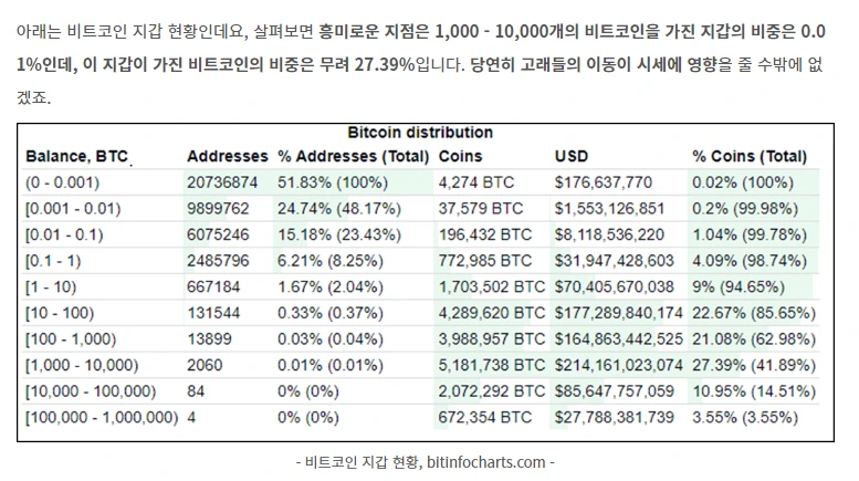 * 비트코인 고래(대주주 같은 개념) 지갑 현황 알기