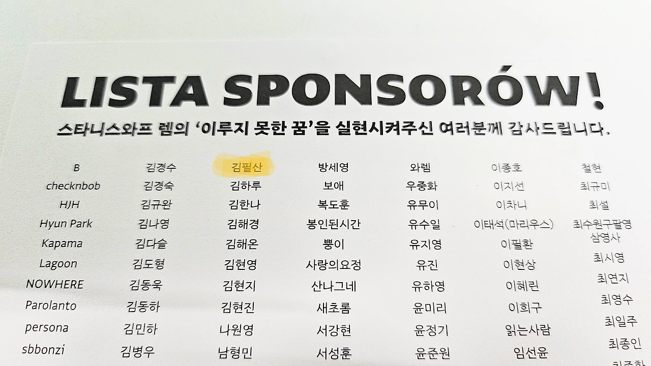 이번 책은 북펀딩의 형식으로 출판되었으며, ‘스타니스와프 렘’이 멋지게 쓰여진 티셔츠와 함께 동봉된 엽서의 뒷면에 펀딩에 참여한 사람들의 이름을 적어 주었다. 기쁘게도 내 이름 또한 잘 기록해 주었다.