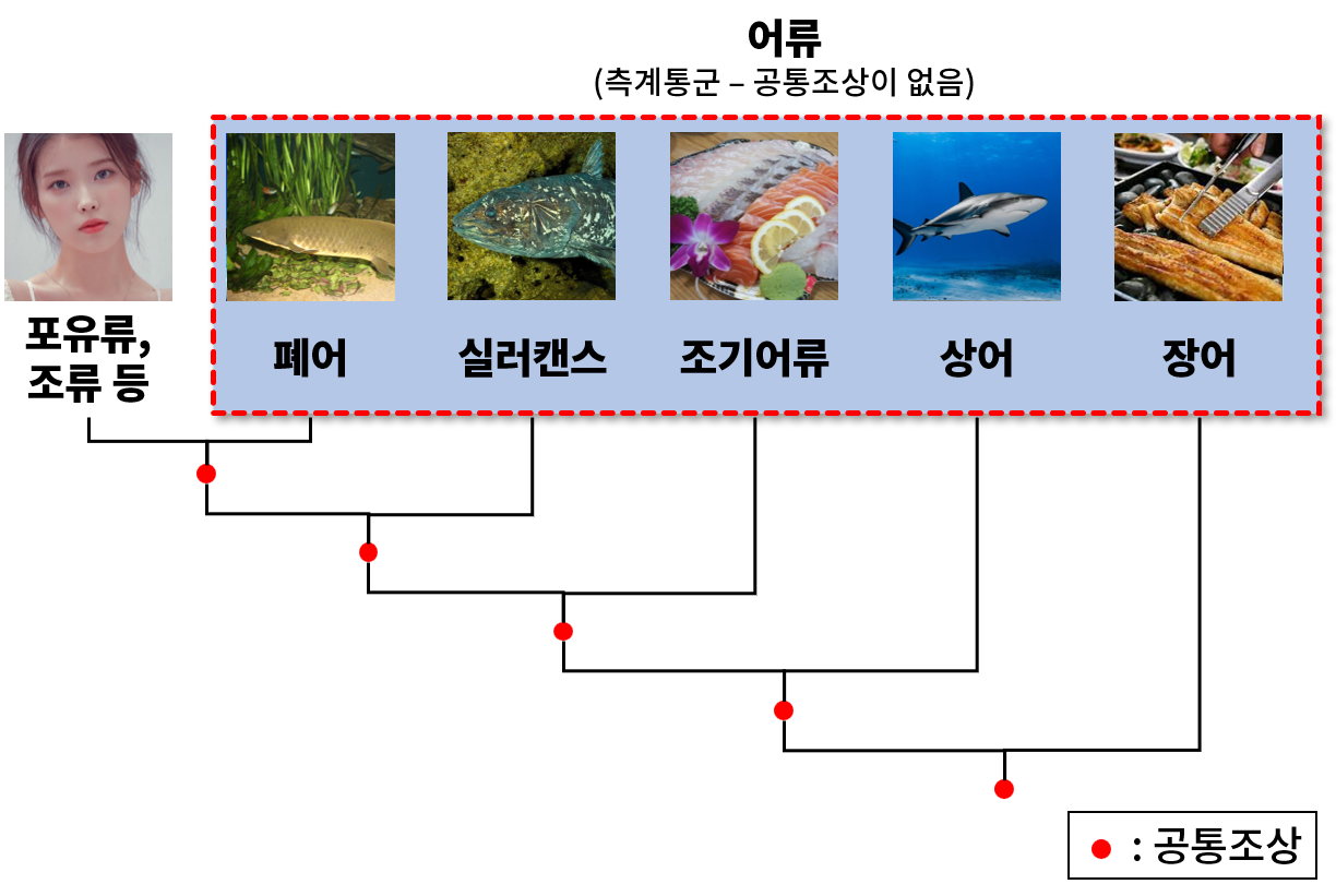 '물고기는 존재하지 않는다'는 말도 마찬가지다. 물고기(어류)라는 분류는 폐어, 실러캔스, 조기어류, 상어, 장어 등 다양한 집단을 포함하는데, 그들의 친척 관계는 엉망진창이다. 단적으로 말하자면, 실러캔스는 조기어류인 송어나 연어보다 인간과 더 가깝다. 즉, 어류라는 분류는 상식 선에서는 당연한 분류법이지만, 측계통군이라 학문적으로는 큰 가치가 없다.