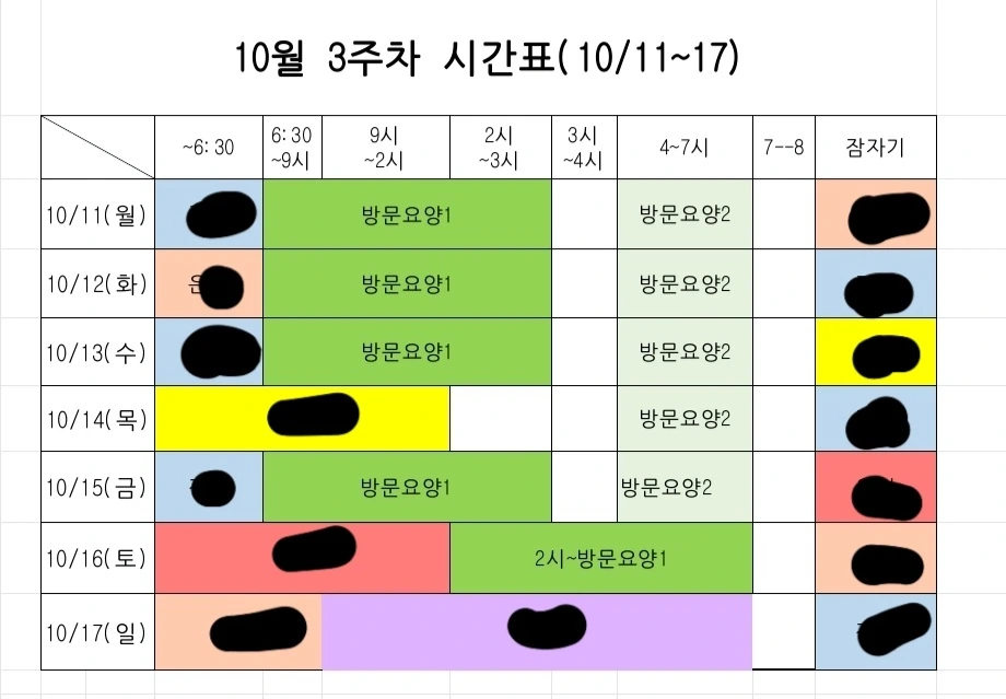 특히나 심야에는 화장실에서 넘어지시거나, 침대에서 떨어져 못 일어나시는 등 갑작스러운 사건사고가 일어나는 빈도가 높기 때문에, 부모님 집에서 누군가는 꼭 잠을 자야 한다. 평일에는 집이 가까운 큰 누나와 매형이 지방에 내려가 있는 넷째 누나가, 주말에는 막내 누나와 내가 야간 당직을 맡기로 했다.