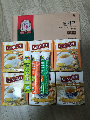 큰 누나가 문 앞에 놓고 간 생강차, 홍삼, 비타민