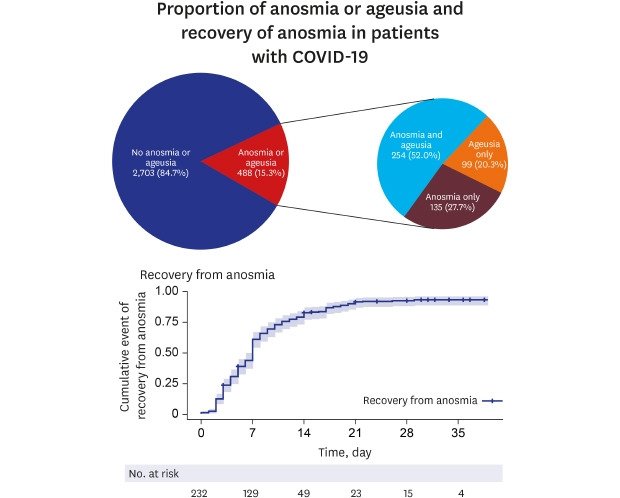 → 이 데이터는 반드시 다시 검증해 볼 필요가 있다고 본다. 코로나 관련 카페에는 완치 후 수개월이 지났어도 후각과 미각이 회복되지 않고 있다는 환자들이 너무 많다.