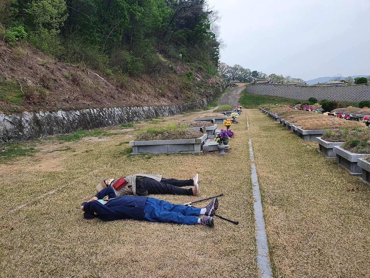 "묘자리가 진짜 있기는 있는 거냐? 큰 애도 안 간다 하고, 너도 안 간다 하고, 도대체 왜 안 보여주는 거야? 제주에 있는 놈이 언제 올 지 알고 기다려? 그놈도 맨날 나중에 나중에 가자고 하고"