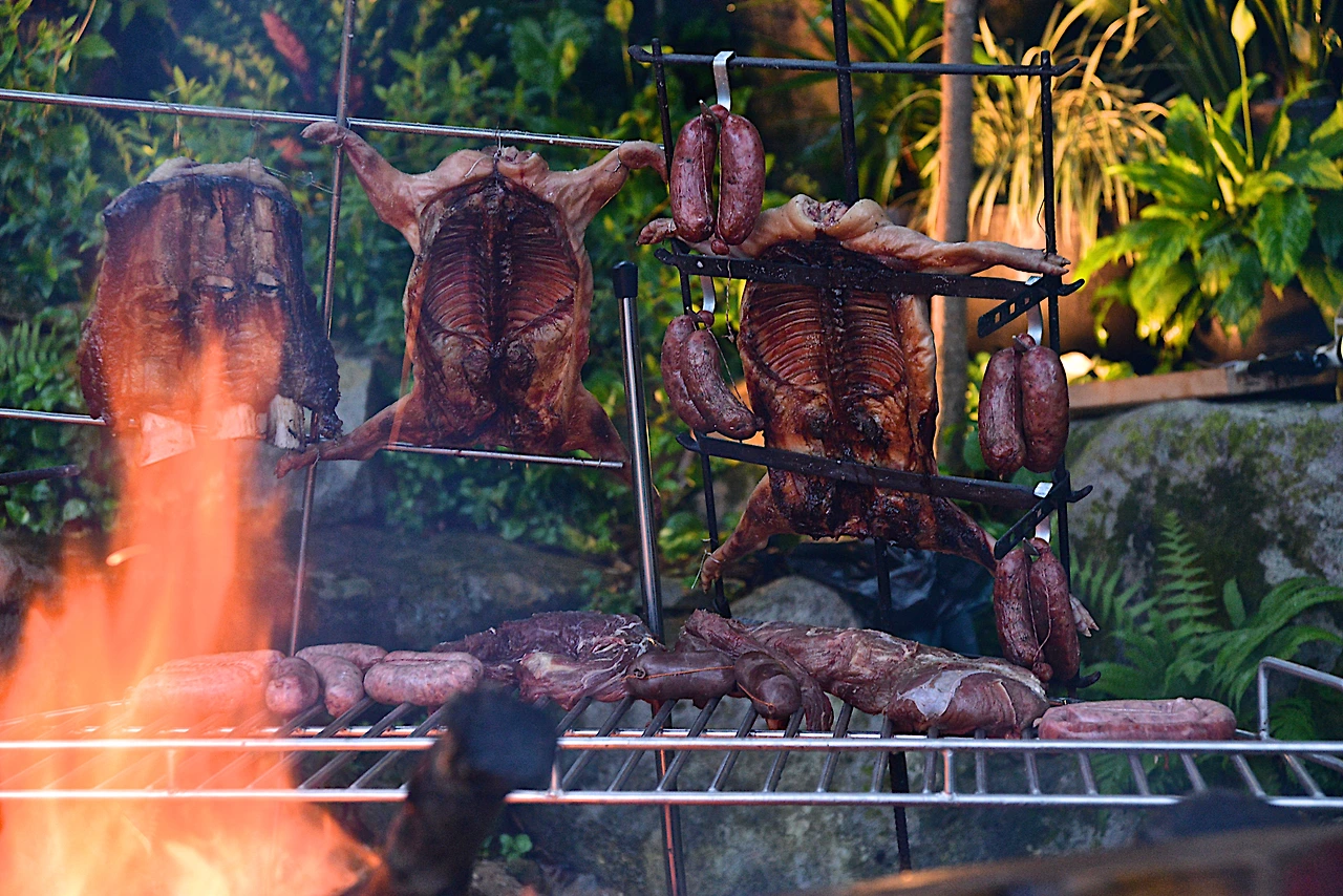 고기가 구워지고 준비가 되는 긴 시간 동안 사람들은 와인이나 맥주를 마시며 치즈류나 핑거 푸드로 적당히 요기를 하며 새로 만난 사람들, 오래 알던 사람들 서로서로 즐거운 사교 시간을 갖게 된다. 날씨가 선선하다면 바비큐가 구워지는 장작 불가에 모여 앉아 이야기 꽃을 피운다면 더 할 나위 없을 것 같다.