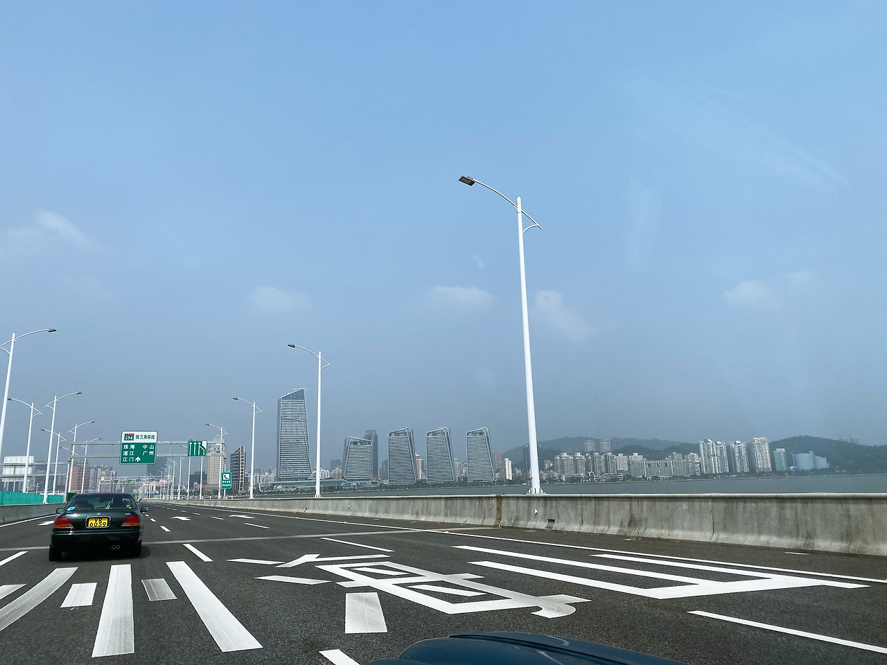 여차저차 말썽 많게 달려왔지만 이제 우리 코벳도 중국을 달린다. 멀리 주해 시가 보인다. 중국이라면 그냥 좀 덜 떨어진 땅 큰 나라라고 생각했는데 꽤 많이 개발이 되었군.