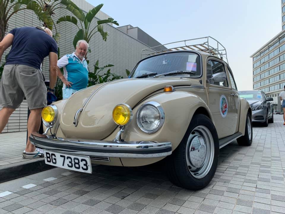 두둥~! 여행 떠나는 날 새벽부터 일어나 준비를 하고 모이는 장소인 홍콩 공항 옆 메리어트 호텔로 갔다. 이제야 누가 같이 여행하는지 어떤 차를 몰고 가는지 알 수 있었다. 클래식 카 클럽 여행이라고 꼭 오래된 차를 가져가야 하는 법은 없는지라 다글다글한 포르셰도 보이고 기아 차도 가져왔는데 알고 보니 그분들은 몇 번 올드카를 몰고 여행 갔다가 고생을 해본 사람들이었다. 서양인으로는 회장인 키스 아저씨와 내 남편. 키스 아저씨의 아내는 홍콩 사람이다. 워키토키도 한 대씩 받았고, 카 클럽 스티커를 차에 붙이고, 차별로 번호표도 붙였다. 우리 차는 10번이다.
