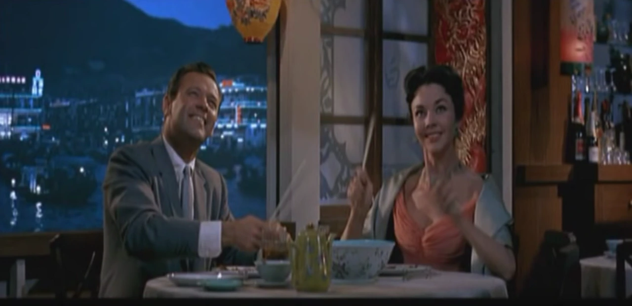 이언 모리슨은 타임스의 호주인 종군 기자로 호주인 아내와 이혼을 결정한 아직은 유부남이다. 이 두 사람은 홍콩에서 만나 사랑에 빠지게 되고 이언 모리슨의 한국 전쟁 취재로 인한 이별, 그리고 사망 소식을 받고 언덕에서 서글퍼하는 한 수인의 모습을 끝으로 영화는 막을 내린다.