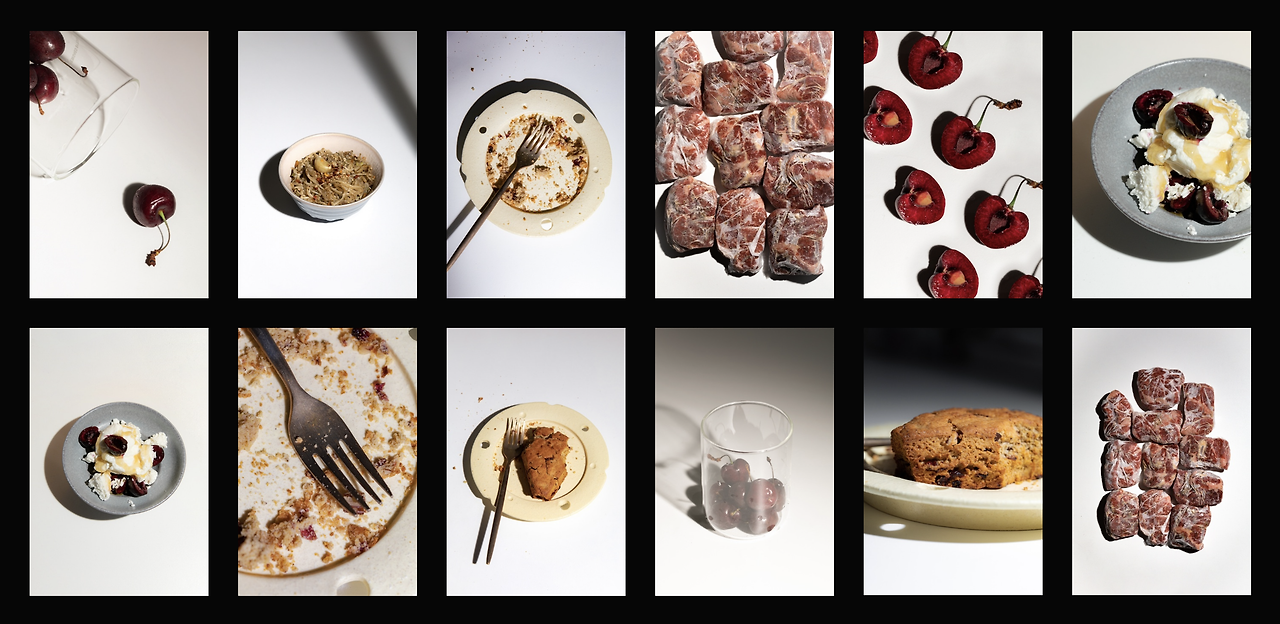 기존에 선호했던 부드러운 톤의 사진과 다르게 강렬하고 그래픽적인 이미지를 만들고 싶었다. 외국 사진작가들의 home still life 등 정물, 제품 사진을 참고하고 있고 음식 사진 특성상 살리면 좋은 가니쉬나 색조합에 대해서도 공부가 더 필요하다고 느낀다. 배경, 소재, 조명 또한 점차 다양하게 해 볼 수 있을 것 같다. 인스타그램에 콘텐츠를 올려보면서 해시태그도 실험해보고, 텍스트로는 어떤 내용이 적합할지, 내가 가져가고 싶은 전체적인 방향이 무엇인지 아직 고민하는 단계에 있다.