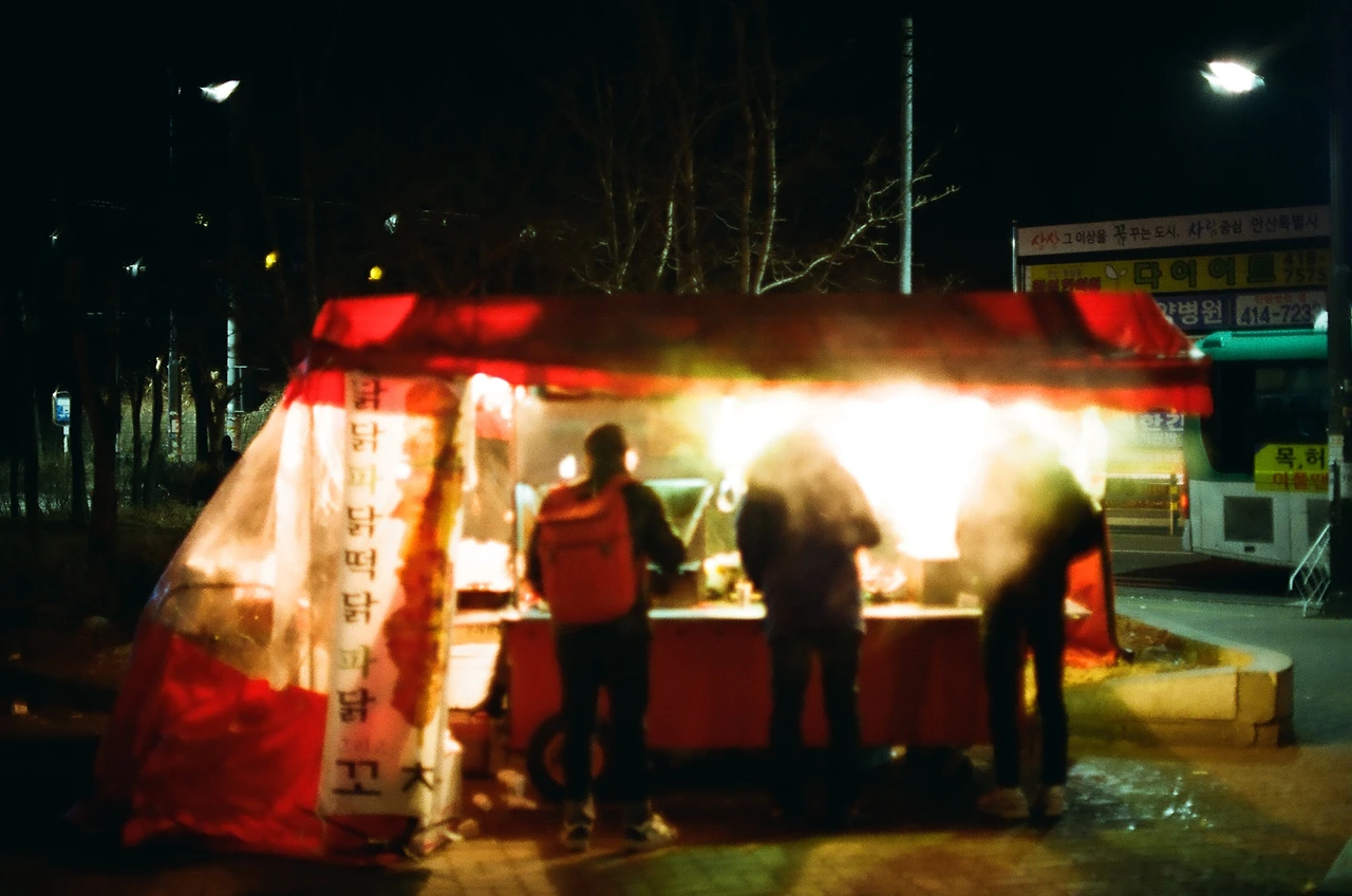 전체적으로 밤에 찍은 사진은 결과물이 좋지 못했다. 흔들리고, 초점이 맞지 않았다. 이 사진도 그렇다. 분명 포장마차에 초점을 맞추었다고 생각했는데 실제로는 더 뒤에 초점이 맞추어져 있다.