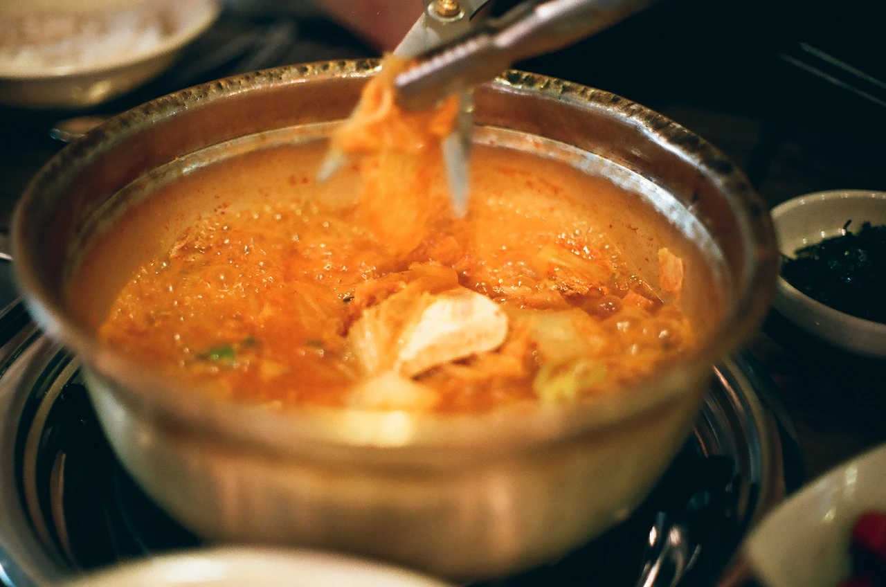 우리는 한국에 도착하자마자 김치찌개와 김치제육을 먹었다.