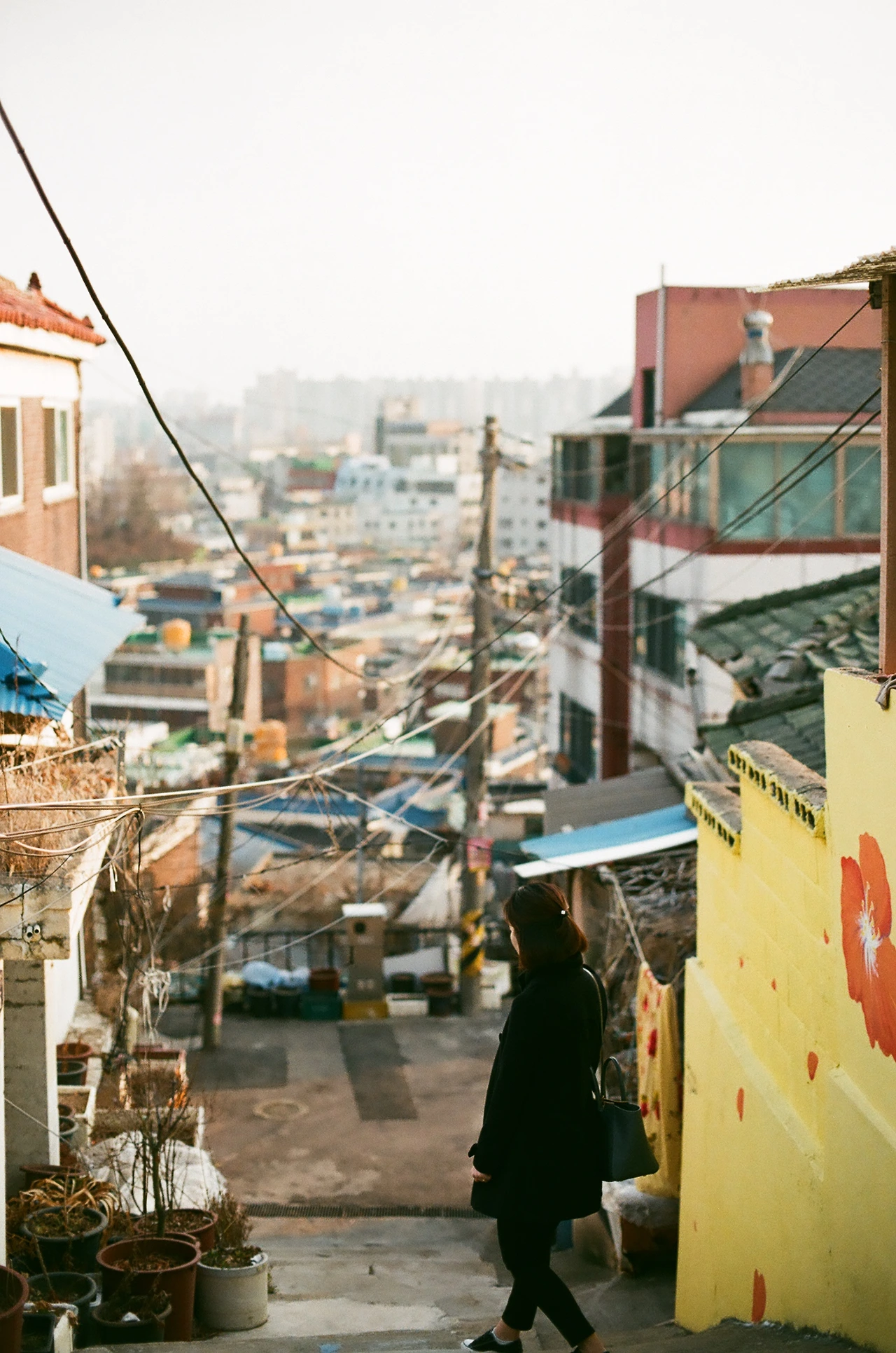 부식된 철제 지붕과 떨어져 나간 기왓장, 벗겨진 페인트, 복잡한 전봇대 전선까지. 낙후한 달동네의 모습을 여과 없이 보여준다고 생각했다.